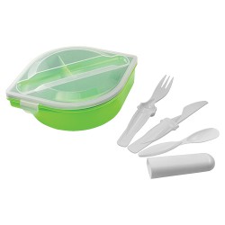 LONCHERA PÁSTICA CON 3 COMPARTIMIENTOS INCLUYE KIT DE CUCHILLO TENEDOR Y CUCHARA 22 X 5.5 CM